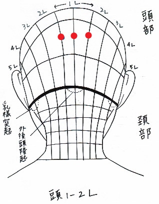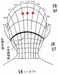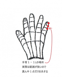 手背と頭は密接な関係にあるので、手背1-1Lに知熱灸をして、頭の1-1Lを狙って治療をすると、その効果が顔面に出て顔面1-1Lに有った虚の反応が無くなるのである。