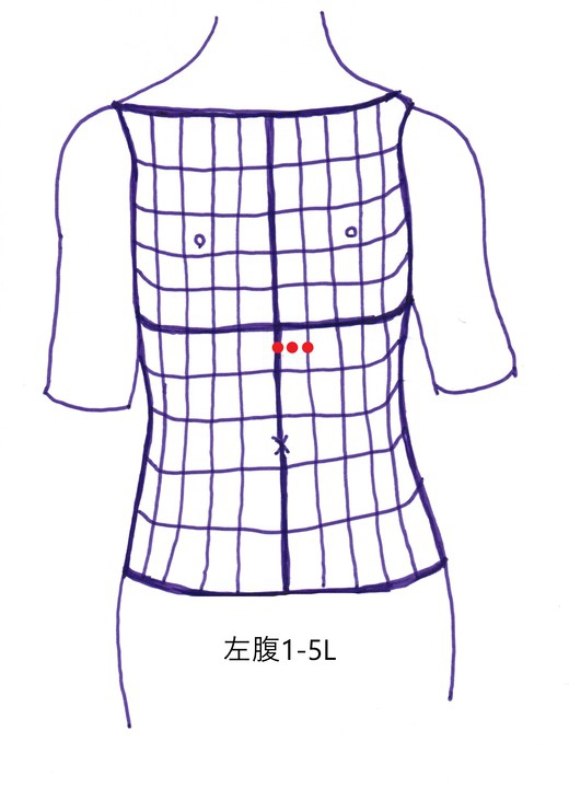 腹の1-5Lは肝臓の表面部位に当たり,肝臓の異変がよくここに現れる事がある。ここが弱ると、足の肝経に反応が現れ、特に膝内側に痛みとなって反応が出て来ることが良くある。