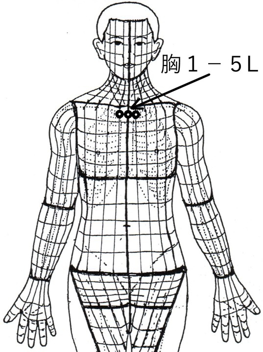 * 風邪引きの定番穴として背1-1K、胸1-5Lに知熱灸をして、肺を背中と胸から効率的に補う。