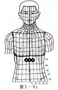 標治法: 腹1-5Lも背1-4Lは両方とも虚の反応であるから、印を付けて知熱灸で虚の反応が無くなるまで補った。提鍼で虚の反応が無くなったのを確認して、胃とお腹の具合は、どうですか?と聞いてみた。