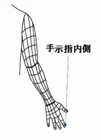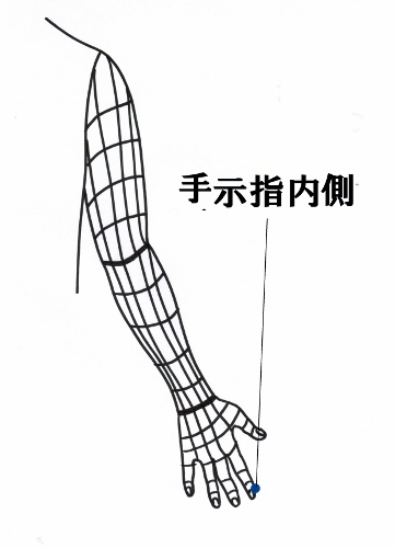 手示指内端を鍼先で軽く27回さすります。痛くもなく、痒くもない、この簡単な鍼は刺絡と同じ効果があり、その日からぐっすり寝られます。