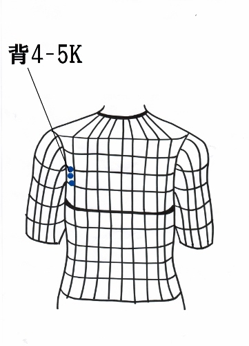 右足背の胃経の中でどこに実があるか調べると、右足背4-5Kに実と虚があった。ここからウエーブで右大腿に飛び、そこから左背4-5Kに飛んだ。治療点は左背4-5Kとなる。ここは胸椎の6番、7番、のラインで脇腹近くの外側になる。