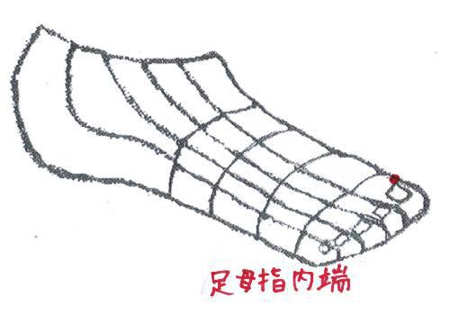 治療点 足拇指内端へ接触鍼をする。
