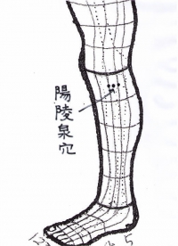 ウエーブで右下腿陽に飛び、右陽陵泉Lが治療点となる。知熱灸