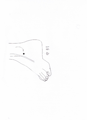右股関節痛に対しては、左の中封穴を使う。