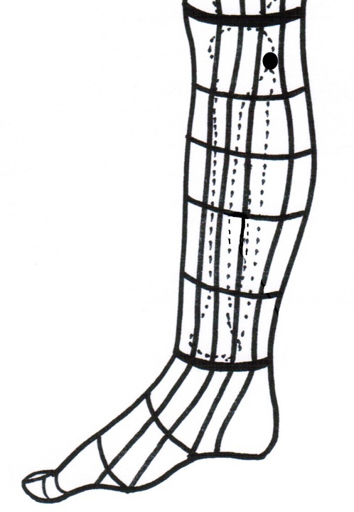 陰谷穴2、ここがまた肩凝りには欠かせない治療点となっている。腎経の2行線が虚で、それが下腿内側に及んでいる。冬の冷え込み、夏の冷房、薄着による冷え、雨降りの湿気、などによって陰谷穴2は虚の反応を示すようになる。