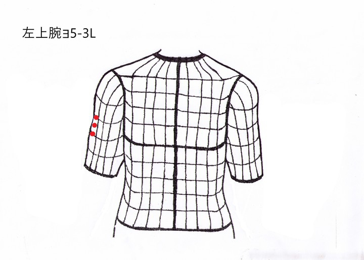 左手背と比較脈診してみると左手背5-3Lの方に虚があった。そこから左上腕陽5-3Lに飛び、治療点となる。腕のダルイ、右上腕陽5-3Lに対して、治療点は反対側の左上腕陽5-3Lとなった。