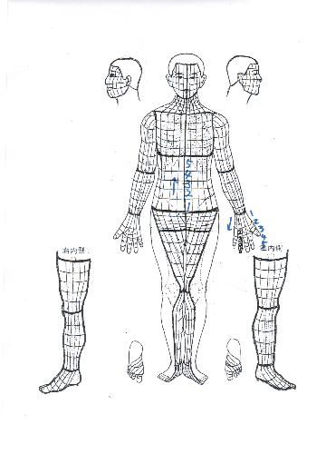 全身のブロックはすべて5段階に分かれていますので、治療点を付ける時には、腹の虚実判定法で得られた順番を覚えておいて参考にすることが大切です。