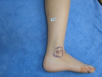 茶色の点が経穴、紫色のラインが指標となる腱や骨です。