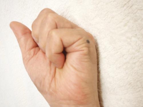 取り方 小指の基節骨の尺側を押し上げてゆくと、第5中手指節関節のたかまりに突き当たる。この関節の割れ目にとる。